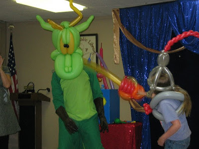 The medieval themed show tied into the 2011 Summer Reading Season theme in Illinois (A Midsummer’s Night Read) and I filled the show with lots of thematic balloons including a giant princess, a ferocious dragon and of course, Sir Balloon-a-Lot, played by a brave audience member in every show.