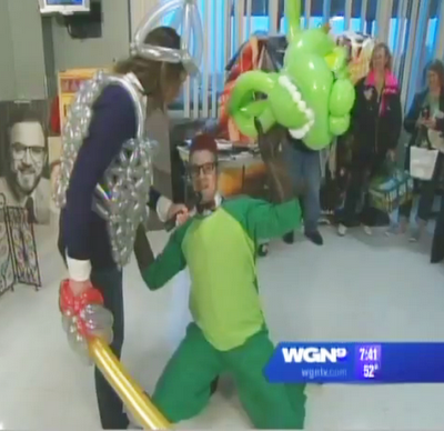 Before the show premiered on June 4th at the Palatine Public Library, WGN-TV featured Smarty Pants on their Chicago area morning news program. A regularly featured personality on WGN, Smarty Pants teamed with Ana Belaval and Dean Richards to preview some of the Midsummer’s Night Balloon show.